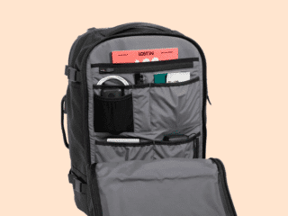 It’s similar to the Matador Globerider45 Travel bag but we like compression straps and the 2 hidden pockets for cash and valuables of the Peak backpack better.