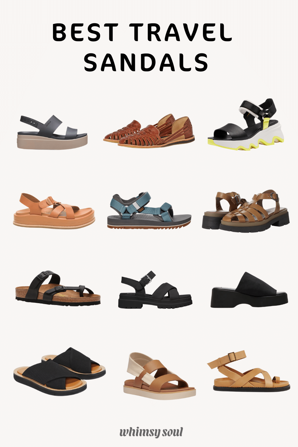 While these aren’t necessarily the best travel sandals for walking (the platforms are pretty high and the soles are not completely even), they are still incredibly comfortable. The memory foam footbed and strong velcro straps will have you well-equipped for most adventures. Great soles, and a great strap sandal. I just wouldn’t wear them hiking.