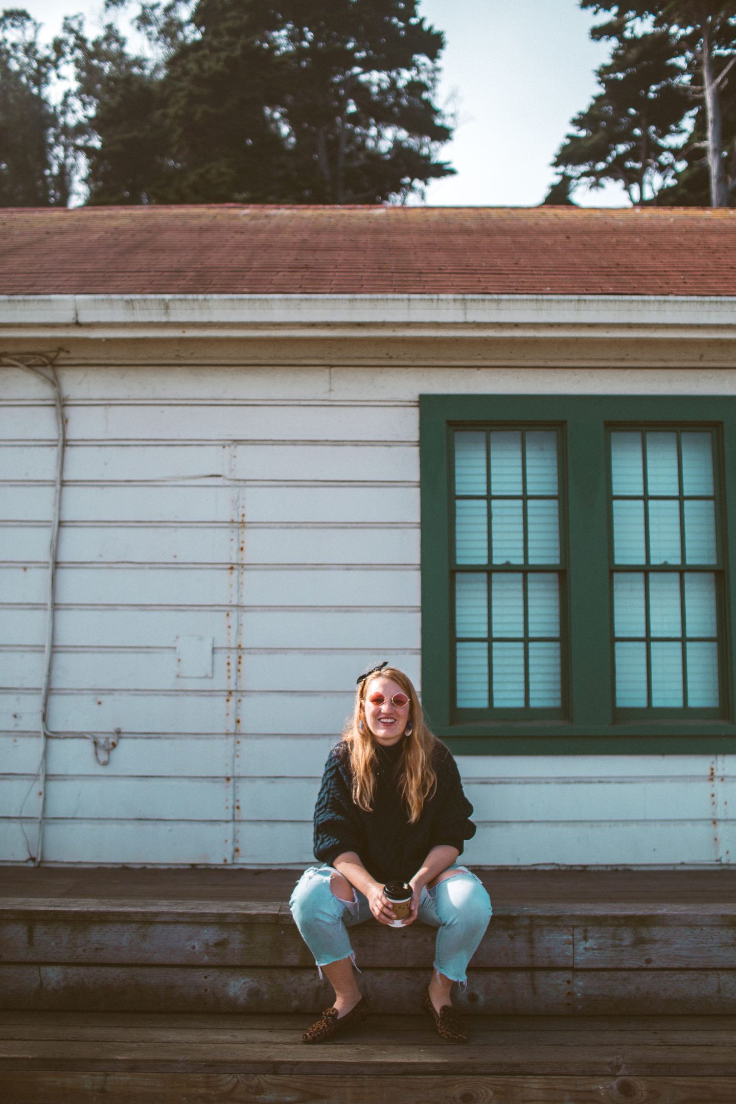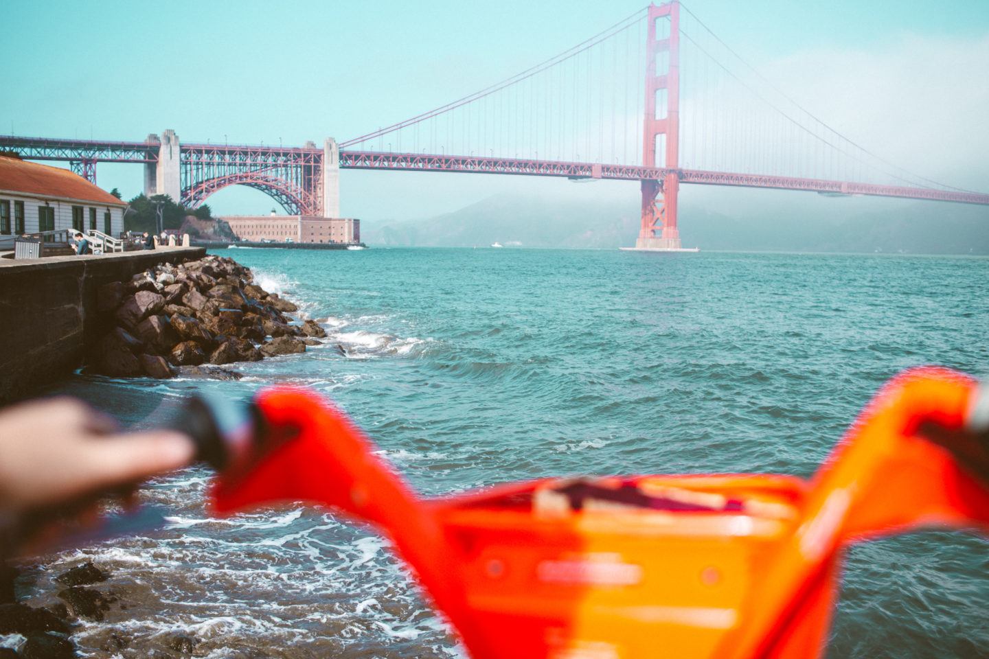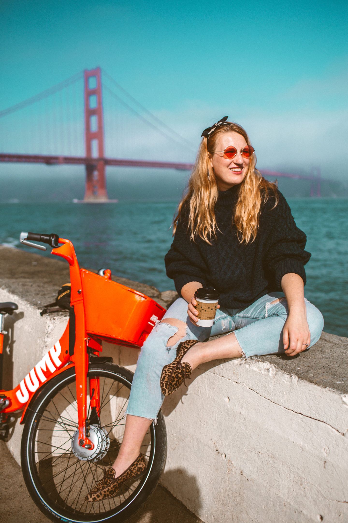 We started on one end of the field where we found a couple of JUMP bikes available to rent, used the app to book them and off we went! There’s a cute little cafe called the Warming Hut on the other end that we stopped for a morning latte at. Right by the hut is a large fishing pier that makes for THE BEST photos of the Golden Gate Bridge! If you are visiting San Francisco, I highly recommend grabbing a JUMP bike from Uber and biking to this spot. Sunsets are beautiful, but the morning makes for the best way to wake up.