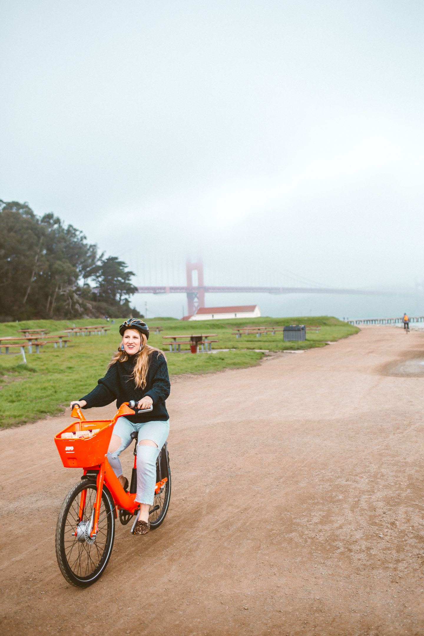 Do you know what I miss about going to college in Minneapolis? (Spoiler alert, it wasn’t the freezing winters!) I loved how bike-friendly Minneapolis is. I biked everywhere in college, but when it came time to move out to San Francisco four years ago, we didn’t have room to pack my bike. We also don’t have any space to store bikes in our tiny apartment, but thankfully there’s a lil ole thing called Uber JUMP, an easy way to rent bikes when and where you need them. Last week, Robin and I called an uberPOOL from our place, headed towards the Golden Gate Bridge and went for a bike ride along Crissy Field with Uber JUMP bike.