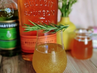 - Fill a cocktail shaker with ice, then add bourbon, Chartreuse, and honey syrup.