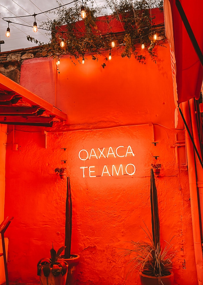 Oaxaca Te Amo is a popular one, as they have a bright pink wall with a neon sign that says “Oaxaca Te Amo,” so as you can imagine, it is a very popular spot for anyone with an Instagram.