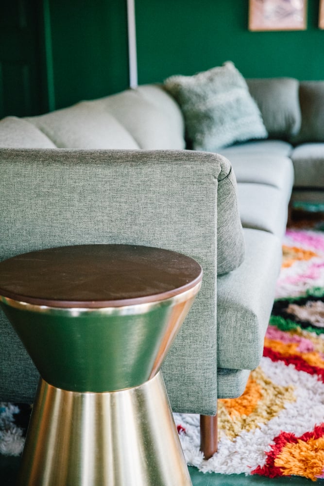 So, my intense googling brought me to Burrow’s Range 6-Piece Sectional sofa in Moss Green. I chose walnut legs to match the walnut TV console I had bought to keep it cohesive.