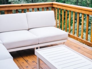 For the outdoor couch we went with the Relay Outdoor 6-Piece Armless Sectional, Chair, & Coffee Table Set in white. Just like Burrow’s indoor sofas, it’s modular so we could get it to fit the corner of our deck perfectly.