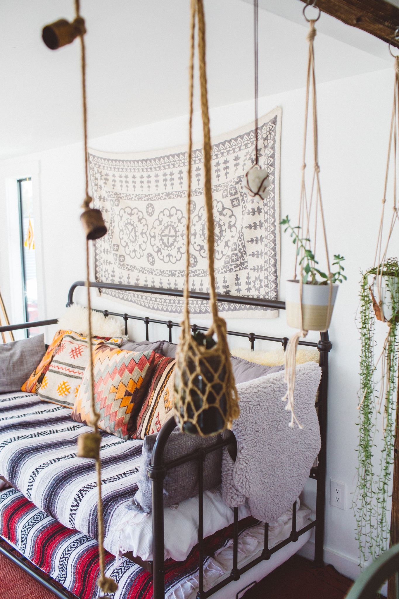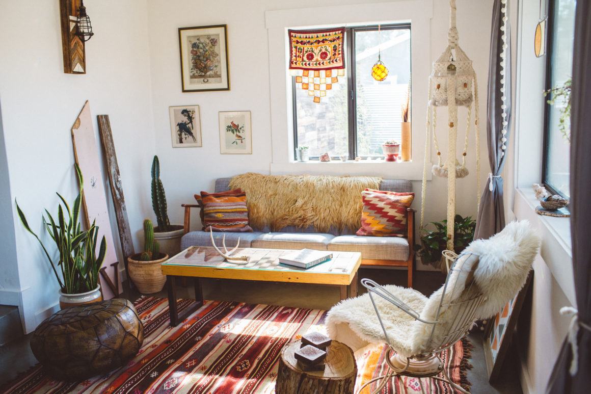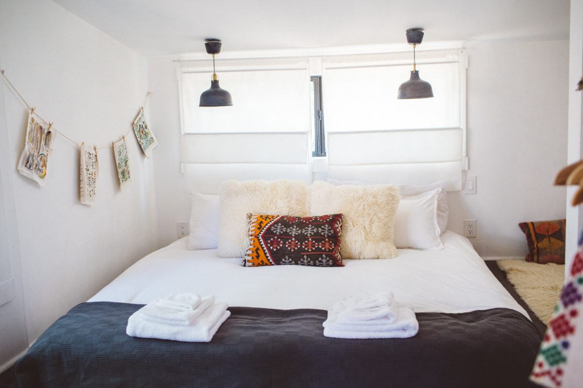 This is the cutest Joshua Tree Airbnb that you’ll want to rent on your next trip to the area. Cabin Cabin Cabin is a small bungalow style house that’s full of boho chic decor, natural light, plants and also a cute back patio area that makes this house stand out from other Joshua Tree vacation rentals. Not all houses here come with finished backyards, but this one has the one of the best outdoor space in my opinion! After a long drive from San Francisco, checking into this welcoming Joshua Tree rental was just what we needed.