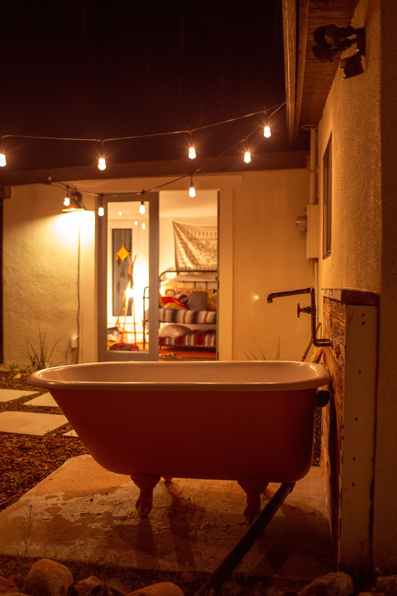 The orange bathtub in the backyard made for a relaxing way to unwind each night under the millions of stars visible in the desert night sky.