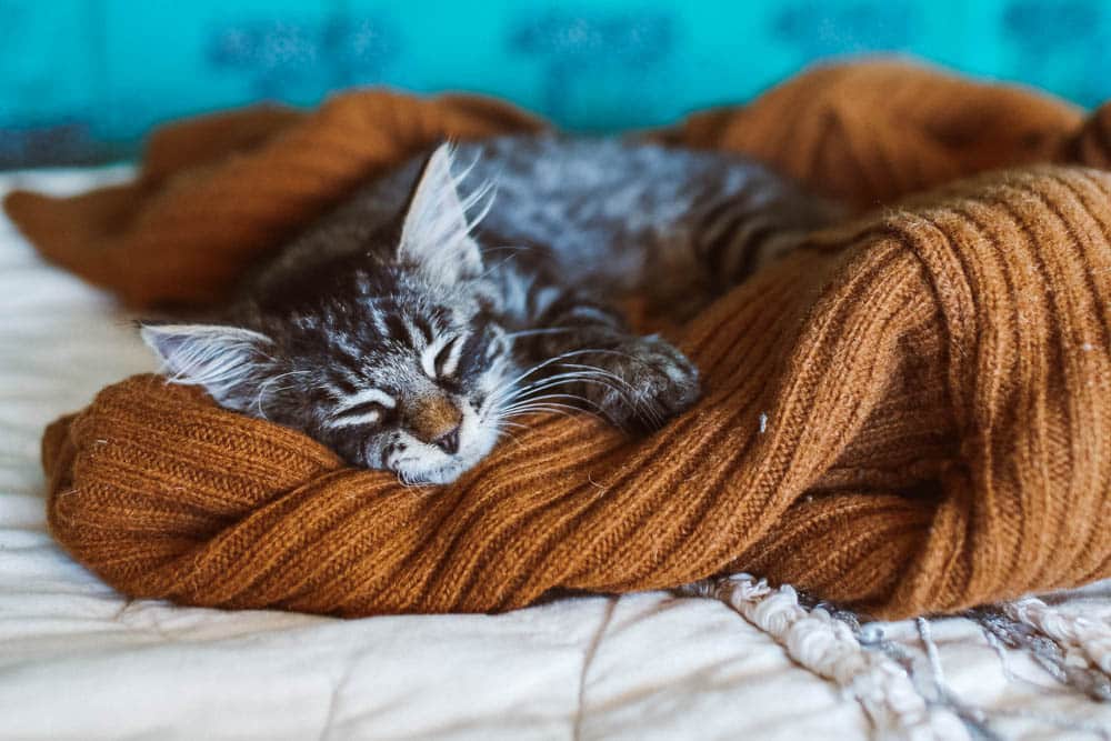 This is something so many people forget, especially if they are leaving cats at home. But hey, you just cleaned you house remember? Twyla LOVES to sleep in our laundry basket and bed, so we always leave one of my comfy big sweaters on top that smells like me and is cozy to curl up in.