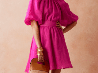 Playfully pink, I adore the open back of this short dress. Wear for spring weddings or date night.