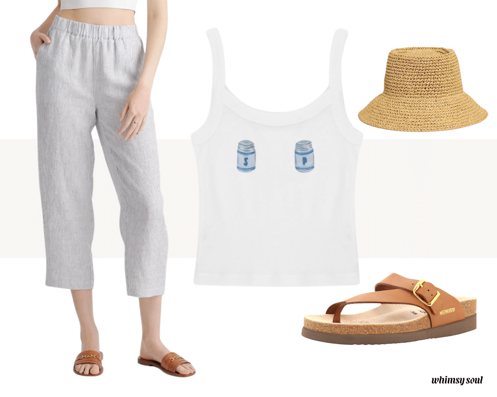 For a daytime exploration in Copenhagen, opt for a pair of linen pants and a simple but quirky cotton tank top to stay cool and comfortable. Linen is a perfect fabric for summer, allowing your skin to breathe while providing a chic, effortless look.