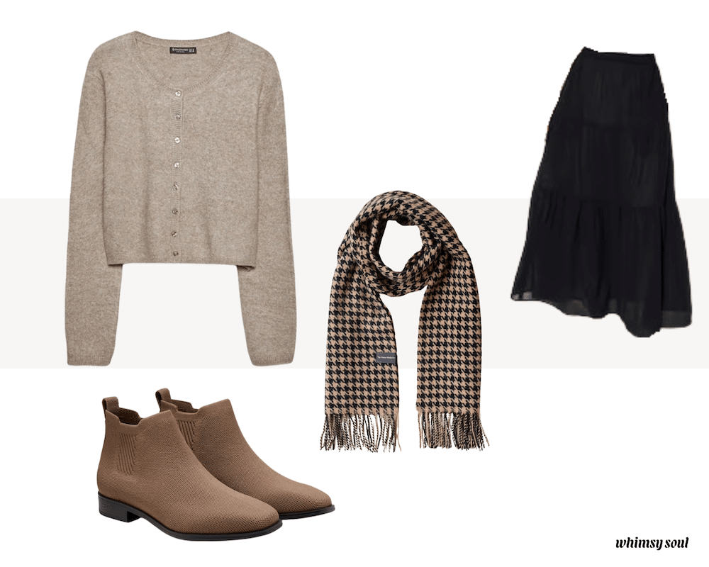 Pair it with a layerable cardigan, so you can easily adjust your warmth as you move between indoor museums and outdoor landmarks. Add a patterned houndstooth scarf for a fun pop of color and some extra style points.