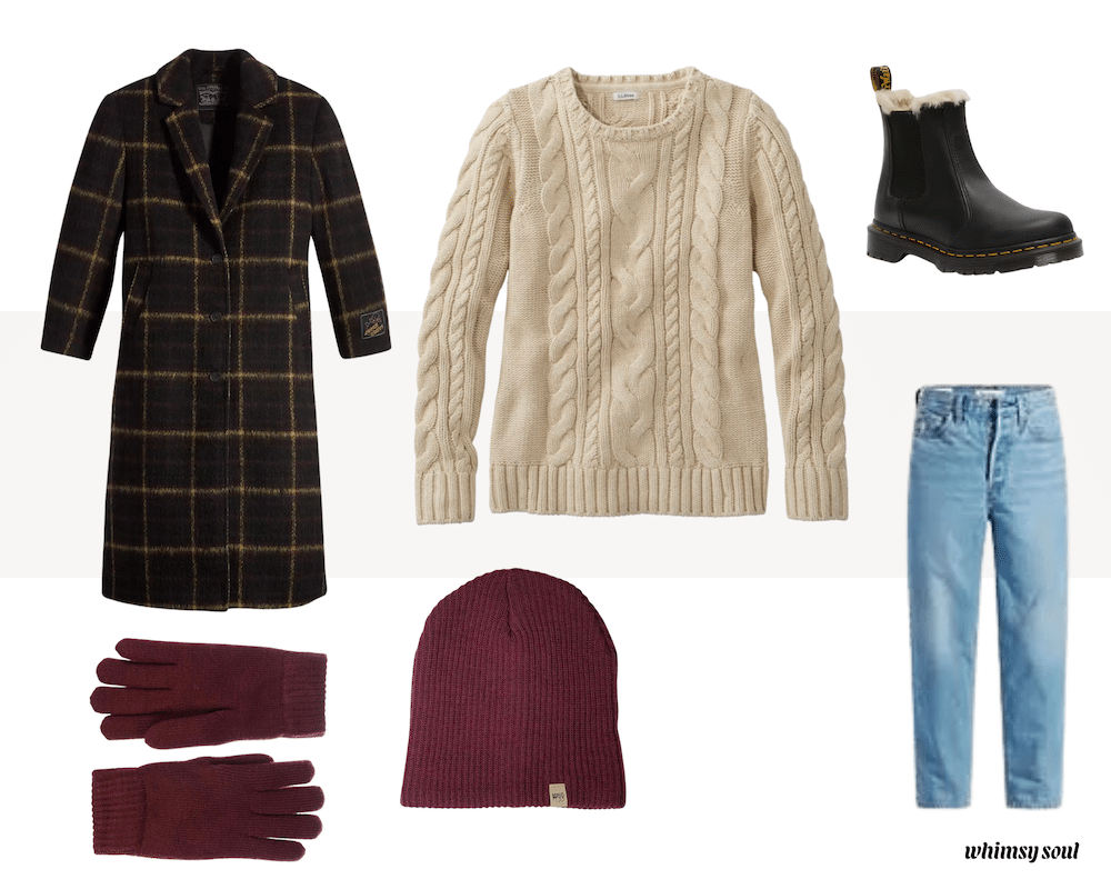 Layer on a plaid coat to add a stylish pattern and keep you warm. insulated boots are essential for keeping your feet toasty and dry, no matter where your adventure takes you.