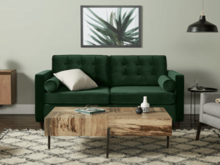 Beyond the convenience, this couch is just super cute. It’s upholstered in velvet, and the textured back and armrests make it the perfect accent piece in any living room.