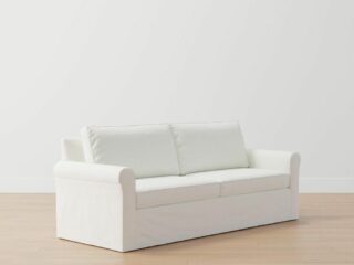 For a sleeper sofa Crate and Barrel experience, consider the Barrett II 3-Seat Queen Sleeper. It’s a linen upholstered sleeper sofa that easily fits three people, and is one of the most comfortable pull out couches on the market.