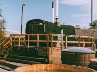 CopenHot offers traditional saunas, wood powered hot tubs and two cold plunge tubs. Thanks to everything being heated by wood, they are almost 100% CO2 neutral. There’s a small concession stand and you can order drinks directly from your tub to add to the relaxation.