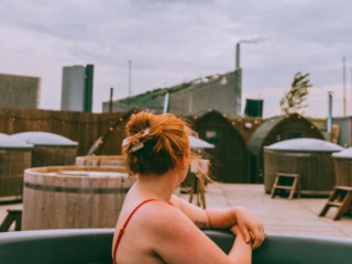 But sometimes a girl just wanted to unwind after a long day in a hot tub with a great view and an elderflower kombucha in hand. So, on a sunny spring evening, my husband and I trekked out to Refshaleøen, arguably the coolest neighborhood in all of Copenhagen, to visit CopenHot’s outdoor sauna and hot tubs.