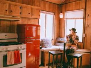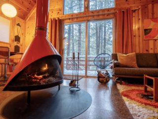 This cabin nails the balance between retro and modern. It has two bedrooms (no pull-out couches here!) and a backyard strung with twinkle lights for cozy nights around the fire.