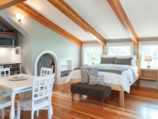 Another super cool tiny home in Leavenworth complete with a private hot tub and right by a creek all the nature you could want. I think this would be a super fun glamping rental during the summertime. It's near the entrance to the Enchantments for easily exploring + hiking of the best wildlife area in the region while also still being close enough of a drive from downtown Leavenworth for any after hiking beers at Icicle Brewery.