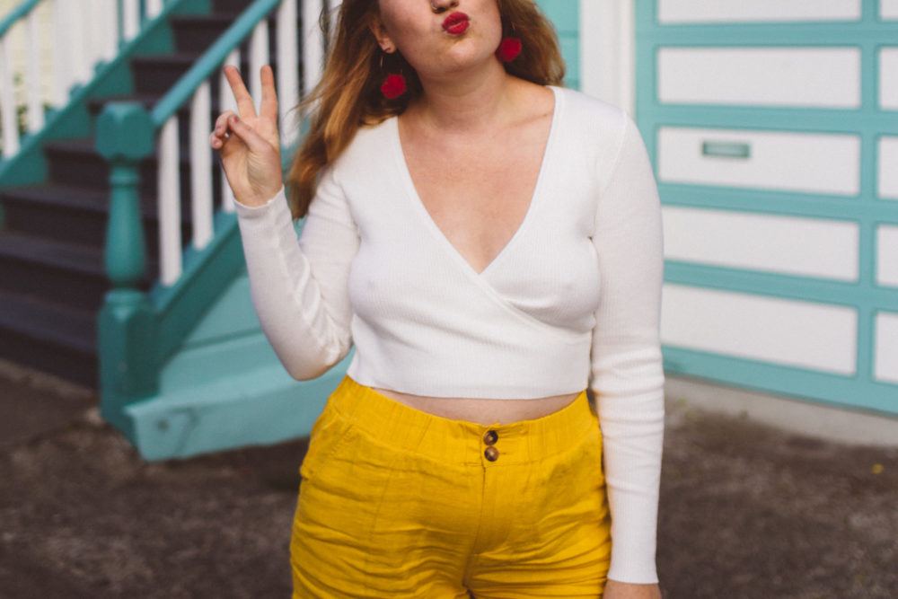 This outfit totally shows more skin than I would have been comfortable flaunting a few years ago, but these days I love rocking whatever I want, and when it’s warm out, I want crop tops and comfy shorts that don’t squeeze!