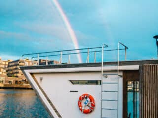 Finally, it’s time for a classic Oslo sauna fjord swim!!! You’ll need some supplies, so now is a great time to swing by your hotel to check-in or grab things if you already got a room. Bring two towels per person (one to sit on in the sauna and one to dry off with), along with a swimsuit and a change of clothes.