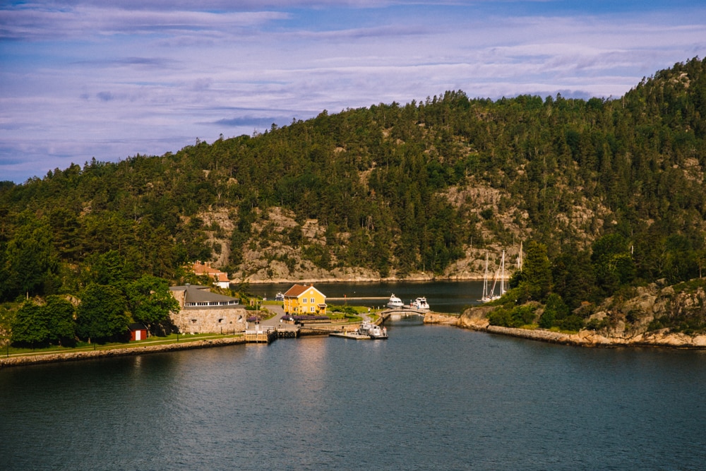 The Oslo Fjord is just so dang beautiful. Robin and I got to soak in all the views on our ferry ride as the ship sailed from Copenhagen to Oslo. We had a private room with a balcony and some of my favorite memories from our whole Norway trip was seeing the little colorful houses on the shoreline as we sailed into Oslo city center.