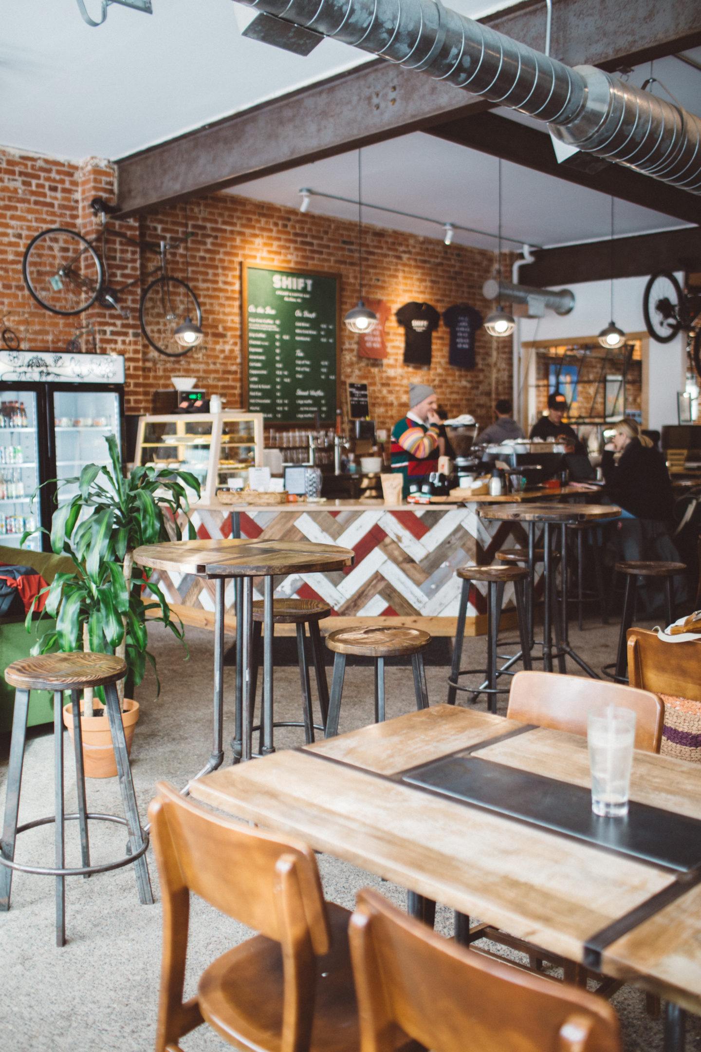 *The Shift: A bike repair shop and coffee shop all rolled into one. The interior is trendy (think wood, succulents, etc) and it looked to be a popular spot for writers and laptop work. They have kombucha on tap here and lots of pastries, along with local coffee.