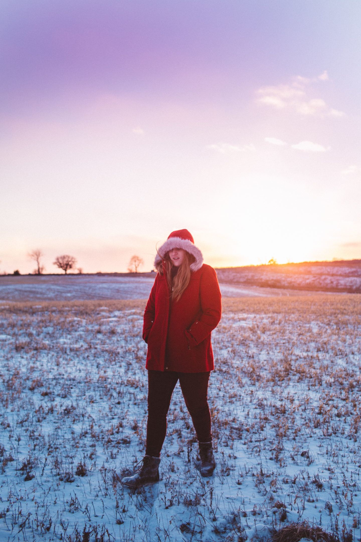 - Heavy winter jacket with a hood(this is the red one I am wearing)
