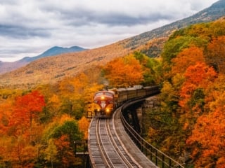 Dome cars give panoramic views of rivers, cliffs, and fall foliage. In winter, this train becomes a cozy cocoon to admire snowy vistas.