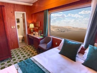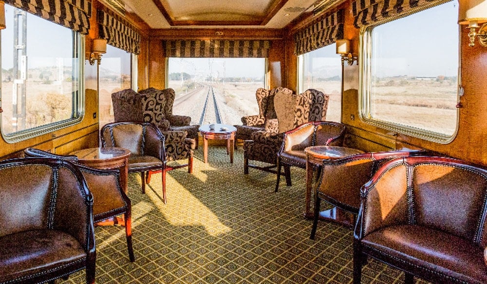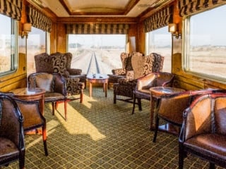 Want to feel the wind in your hair while cruising through Africa? The open-air observation car of Rovos Rail lets you do just that. This luxury train travel experience includes suites with private baths and daily linens, some even with full tubs.