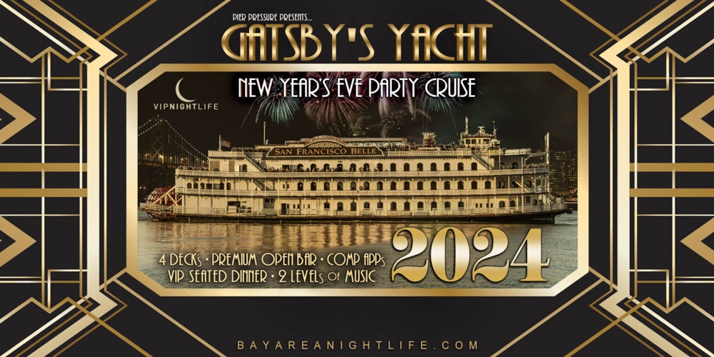 - San Francisco Belle Great Gatsby Cruise: Open bar, casino tables, epic views of the Ferry Building, beautiful fireworks show over the bay from the rooftop deck and all the 1920’s style you could want in this epic party.
