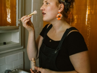 This clay-colored blush is creamy and the perfect tint to leave my cheeks rosey. It’s made from shea butter, Al Amal Co-operative argan oil, rosehip oil, and organic beeswax. The texture makes it easy to blend to look natural, and the color stays all day.