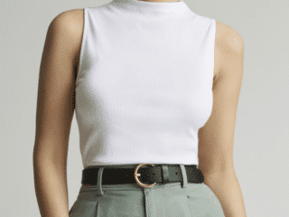 I bought The Supima Micro-Rib Funnel-Neck Tank in white as a basic layering shirt. It’s $40 and absolutely the same fit and feel as similar white tanks I’ve bought at Target for $5. So, I would recommend you head to Target or Walmart to stock up on basic white t-shirts and tanks and other layering pieces since you will save a ton of money.