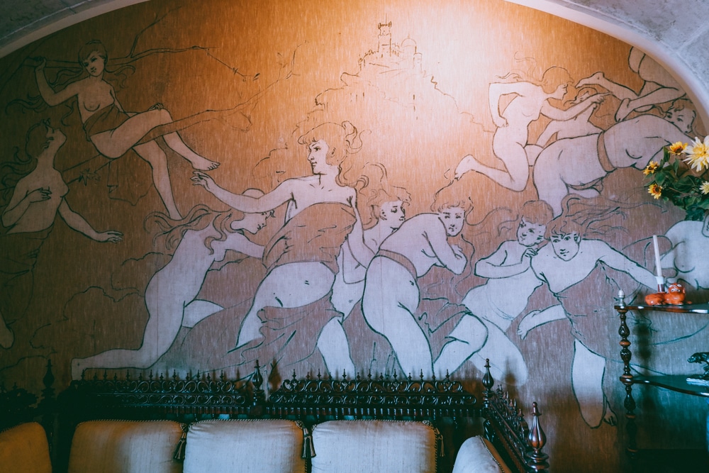 Taking elements of Gothic, Egyptian, Moorish and Renaissance architecture to bring new life to a ruined monastery. The palace was surrounded by a park with gardens of exotic trees, foundations, ponds, cottages, chapels and more.