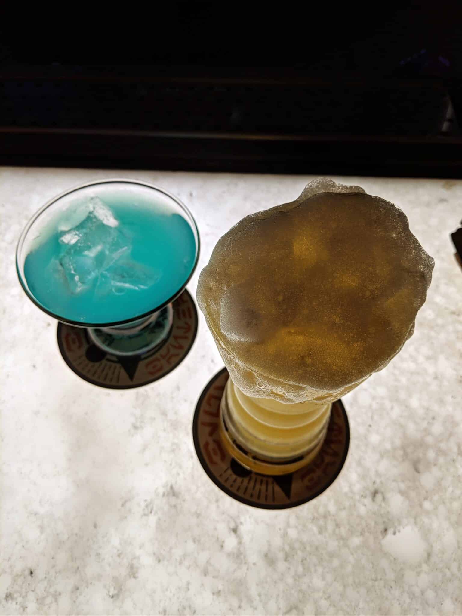 If you’re here for the alcoholic drinks, they don’t disappoint! Beer and wine are on offer, but the Star Wars cocktails are where it’s at. I recommend the Fuzzy Tauntaun, which is topped with a tingling foam that has a surprising numbing effect.