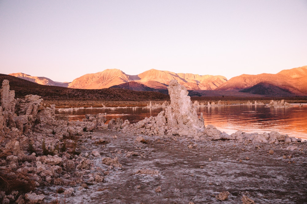 This section has a lot of tufa clusters and a killer view of the mountains that is illuminated during sunrise. During our visit we saw the whole valley, water and sky turn pink for a few minutes, too, it was beautiful.