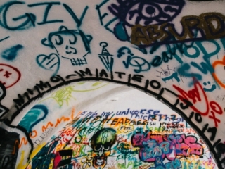 About a mile in you’ll see a large arch with a wooden map. This is the entrance to the Cal Poly SLo Architecture Graveyard museum! From here, follow the path up and into the graveyard. You’ll probably first stop by the Observation Deck that overlooks many of the structures. From here, wander at will!