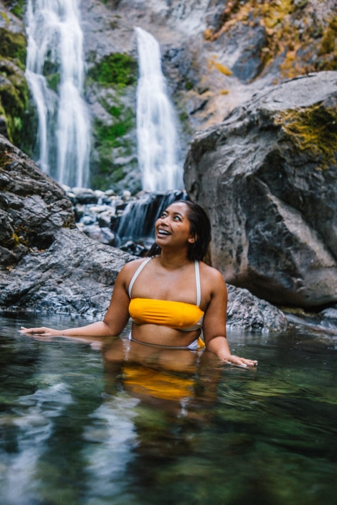 The base of Faery Falls is small but there’s few boulders that are perfect for sitting on and enjoying the waterfall. You can also scramble down a bit and swim in the second pool, which is deeper and more private compared to the main pool.
