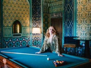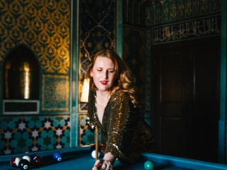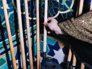 When light pours in from the ornate windows, little shadows shaped like flowers are cast upon the pool table, adding to the whimsy.