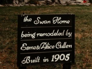 The Cullen’s name is on the mailbox and Esme will sometimes leave notes on the whiteboard inside the lobby. They also have a graduation cap piece of artwork (from the movies), and sometimes set the table for guests with Twilight themed settings and even have Carlisle’s Office.
