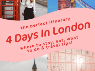 I hope my 4 day London itinerary helps you have a fantastic trip! I loved exploring this city and I really want to go back, this time healthy (being sick made it no fun) and with a bigger food budget so I can drink all the fancy cocktails and eat 100 more meat pasties from train stations.
