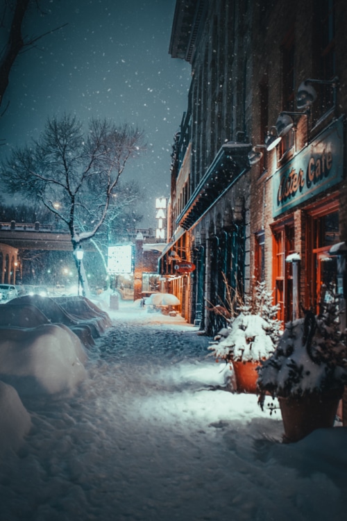 One of my favorite times of day is sunrise after a big snowstorm before the sun heats up the world. You’re left with all the pine trees and houses covered in snow, it looks like a true winter wonderland.