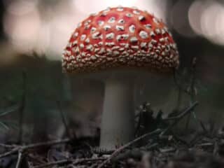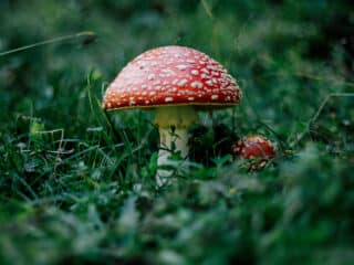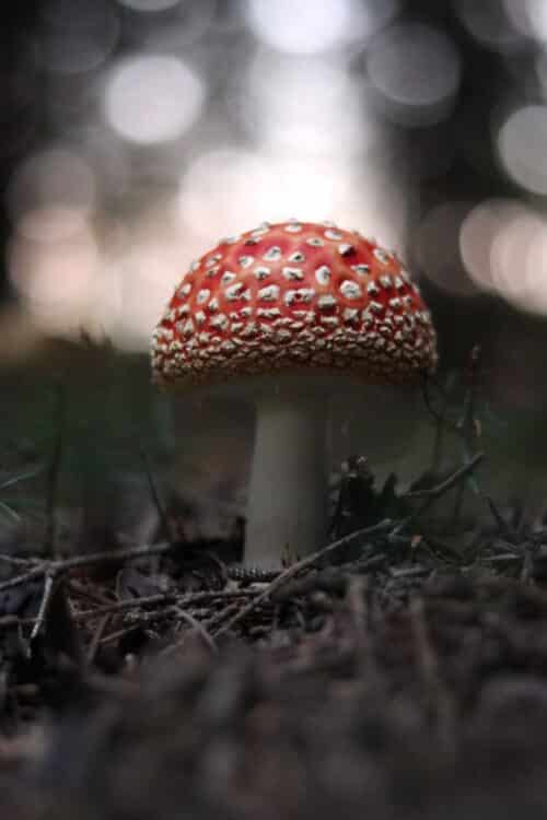 Dark forest, bright red mushroom – how cute?!