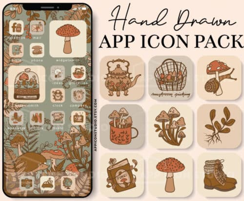 Ekk, how cute is this mushroom picking app icon set?!! I love the various mushroom types, the basket, snail, boots and little fungi journal. So dang fun for a cottagecore phone!!