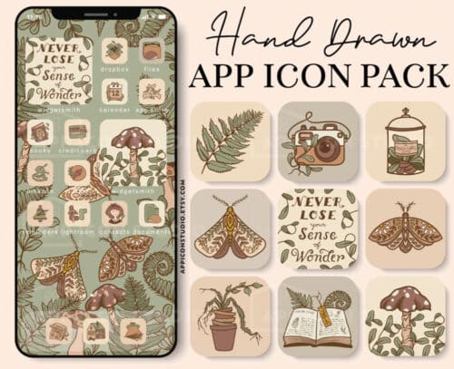 When the IOS 14 apps first came out, you had to pretty. much manually make all the app icons yourself but thankfully now there’s tons of small artists that have made beautiful (and very cheap) icon sets you can shop online and quickly get installed to pair with your aesthetic wallpaper cottagecore phone theme.