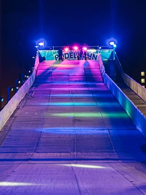 For just a couple of Euros, you can climb the ladder and hurdle down the ice slide on a tub. After dinner at Fredericks, we were walking to the train station and decided on a whim to run across the street and go down the slide before they close.