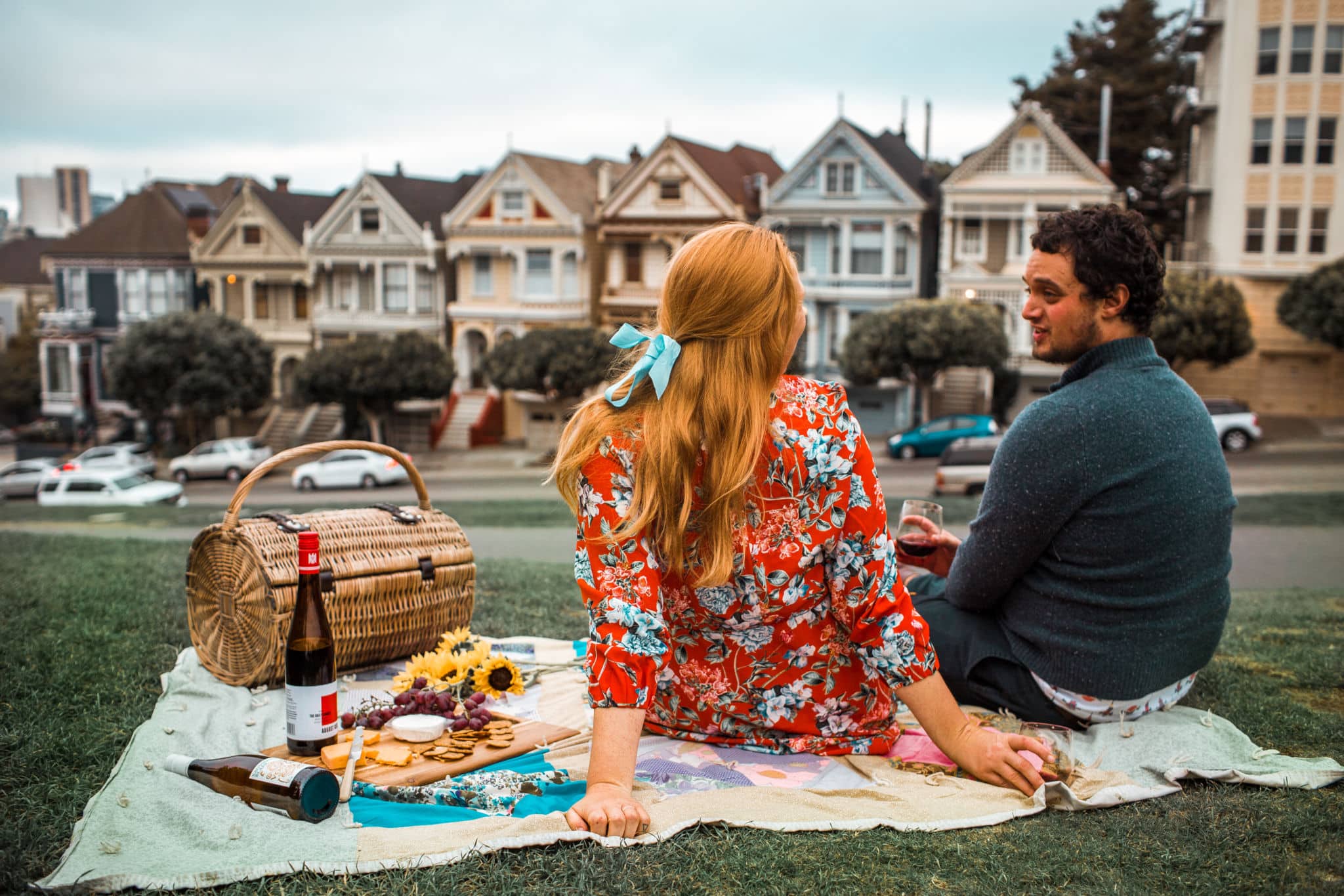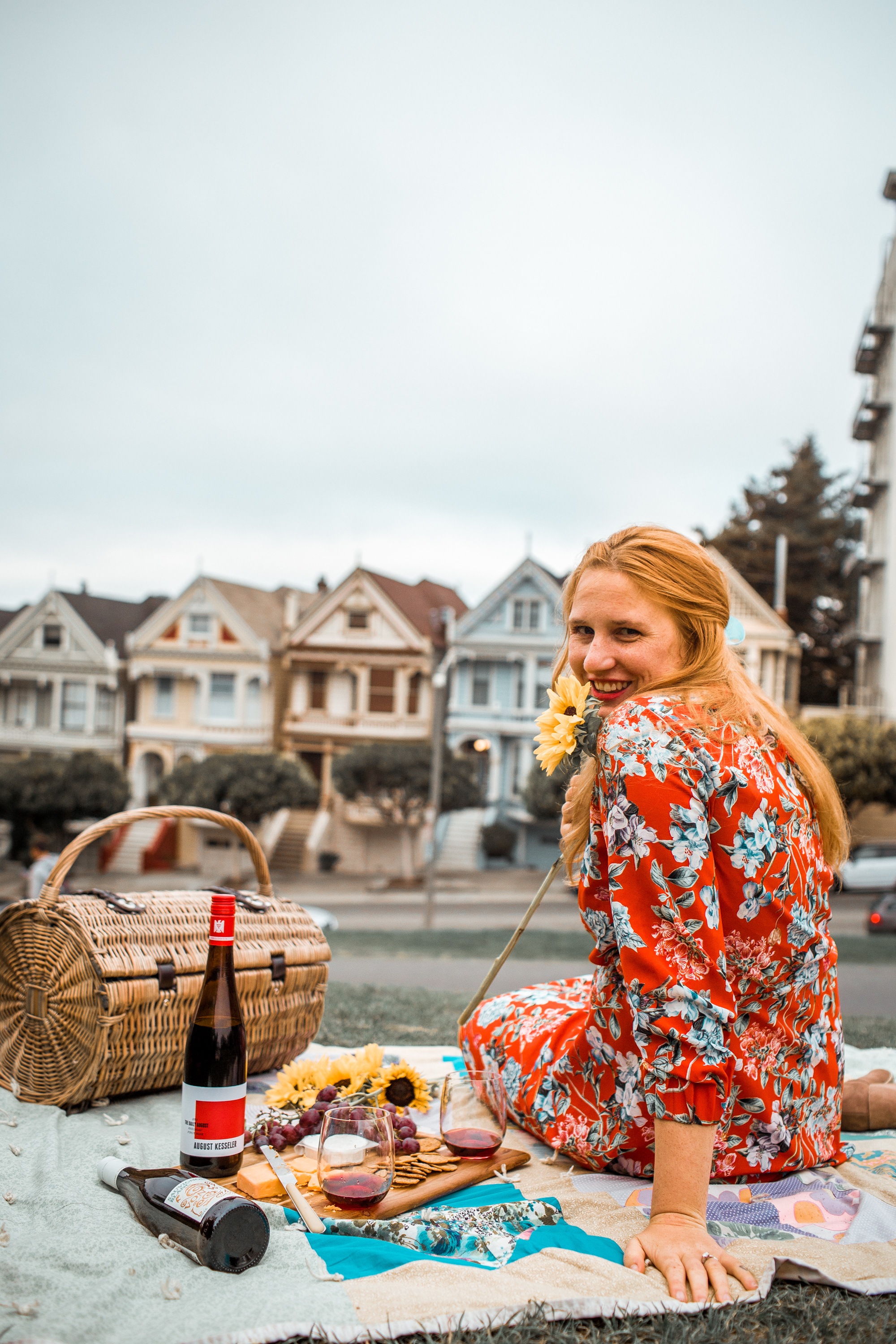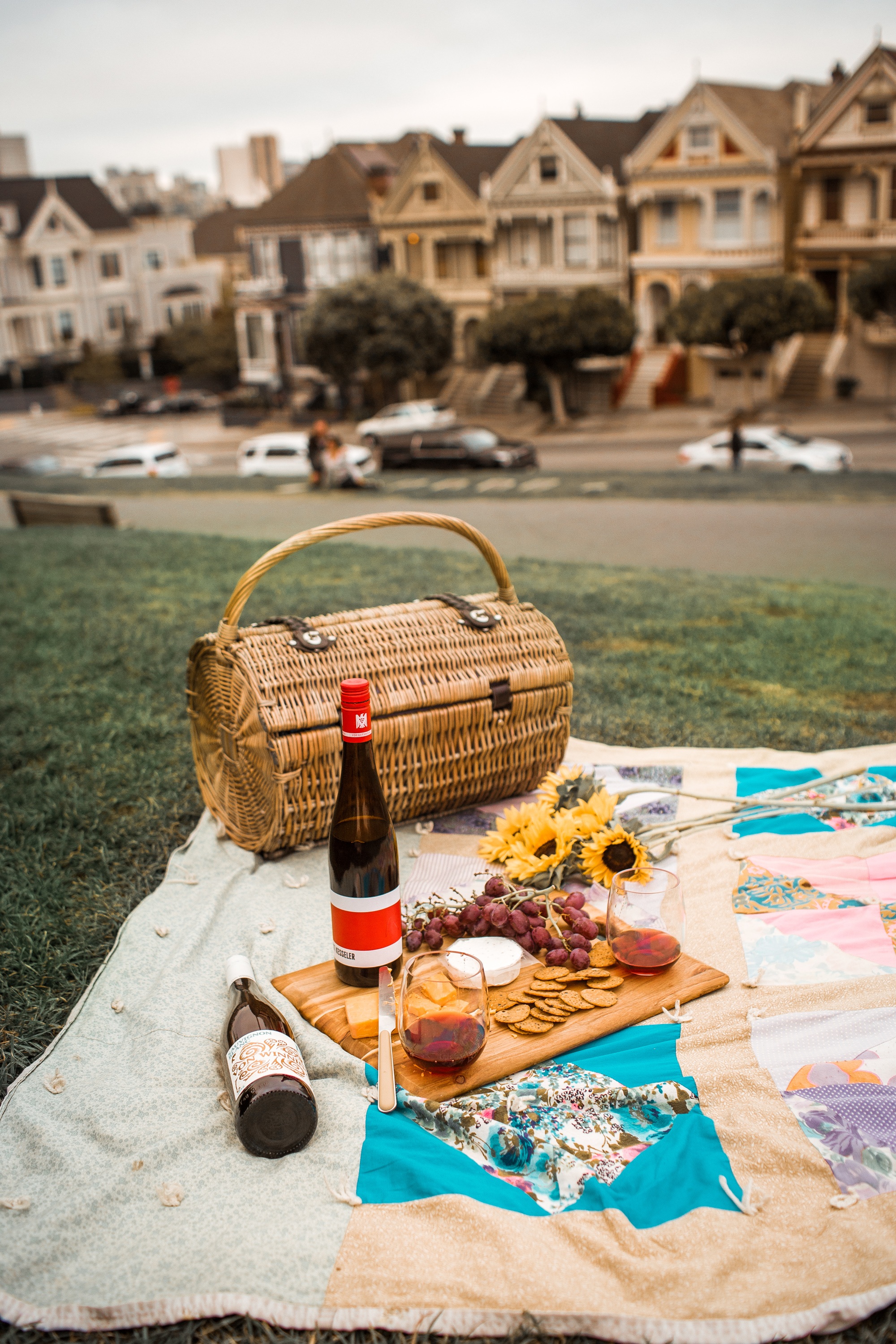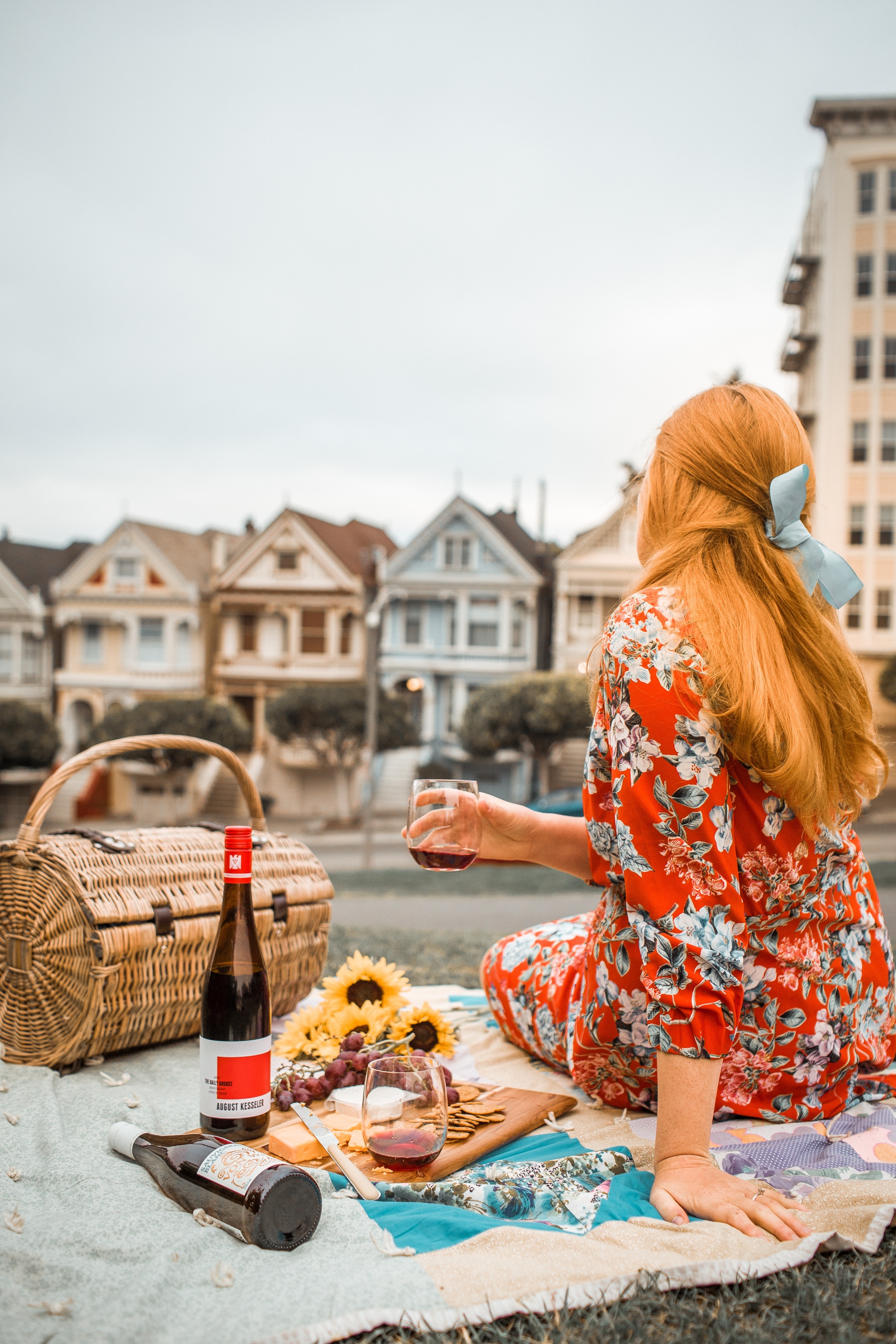Boy, how one year flies fast! This time last year we had literally just gotten married and were getting ready to leave on a 3-week honeymoon across Europe, kicking it all off in Germany. Robin and I both fell head-over-heels in love with Germany (like, it’s in our 5-year plan to actually move there for a bit), so when it came time to celebrate our 1 year of marriage, we knew we had to ring it in with something that was totally “us”. Cue: our cute AF picnic with German wines at the Painted Ladies here in San Francisco.