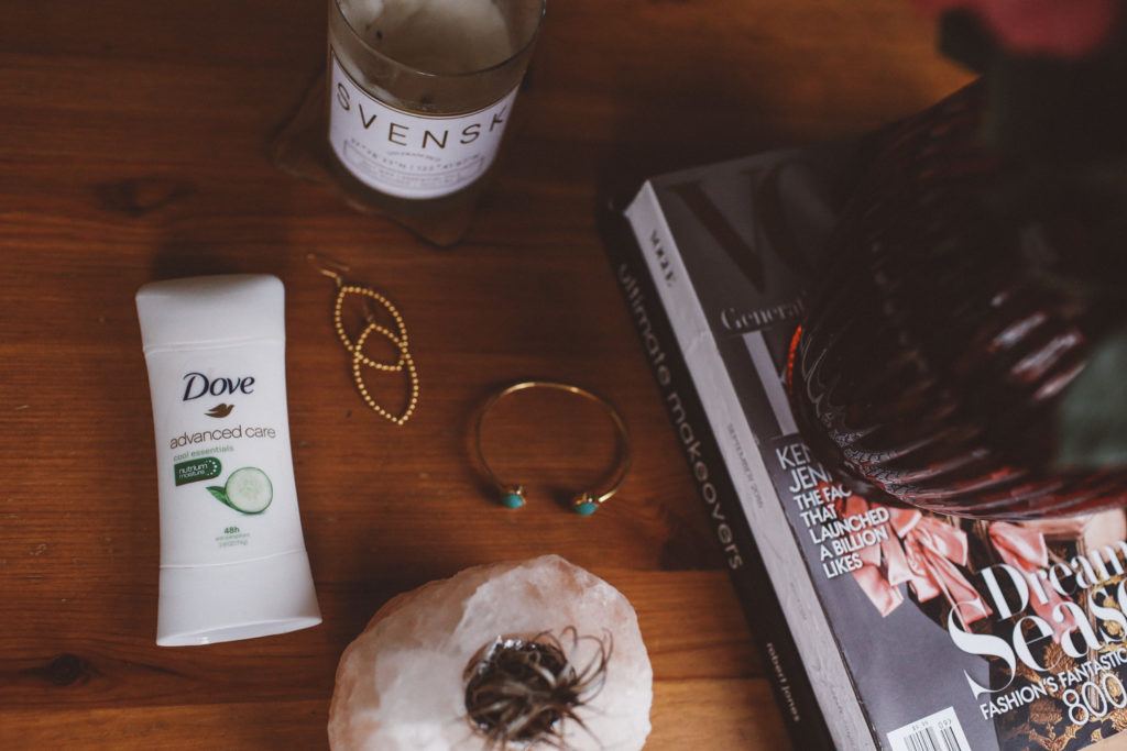 Guys, I know this is a sponsored post, but this stuff really works! For the past week all I’ve been wearing is Dove Advanced Care Antiperspirant 48hours – including during my weekend away with the girls when we danced half the trip and were always on the go! This blend has skincare benefits of Dove ¼ moisturizers and NutriumMoisture, on top of helping me stay fresh, which is why it’s been an instant favorite. I’ve been keeping it out near my workstation instead of tucked in my closet/beauty counter so I can quickly apply it while on the go.