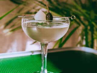 Briny, tangy, and umami, this Knives Out gin cocktail is to die for.