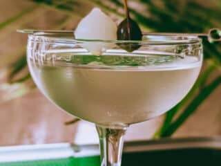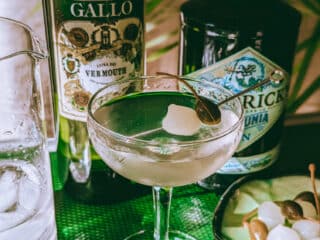The inspiration for this Knives Out cocktail is pretty straightforward: glass… onion… onion in a glass! And when it comes to an onion cocktail, you can’t go wrong with the Gibson.