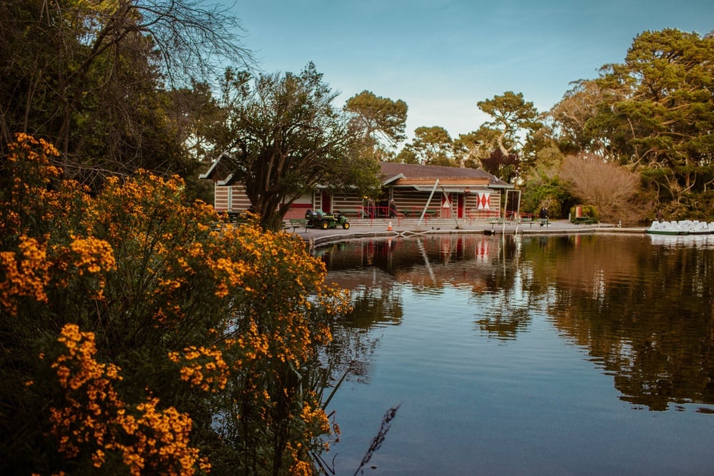 Stow Lake has a lot of fun hidden gems. There’s the Stow Lake Boat House, which offers paddleboats for rent (trust me, it’s super fun to paddle around the lake on a nice day!) But there’s also a waterfall and a Chinese Pavilion, which is super beautiful and makes a great photo.