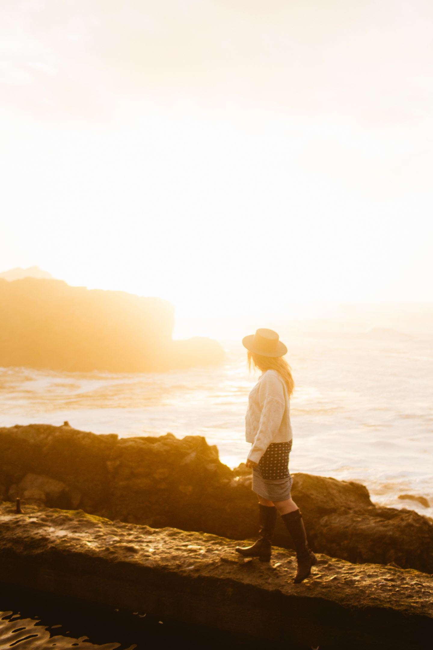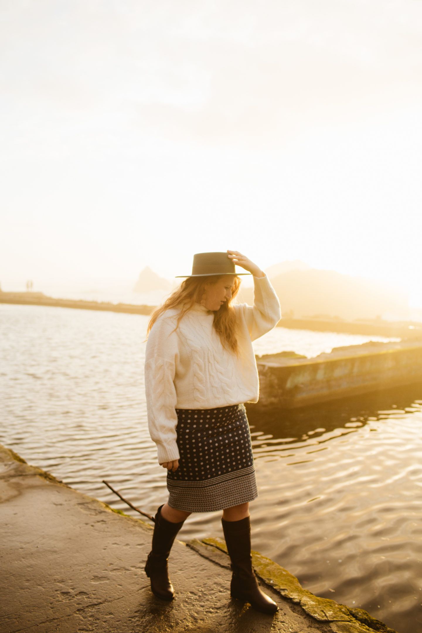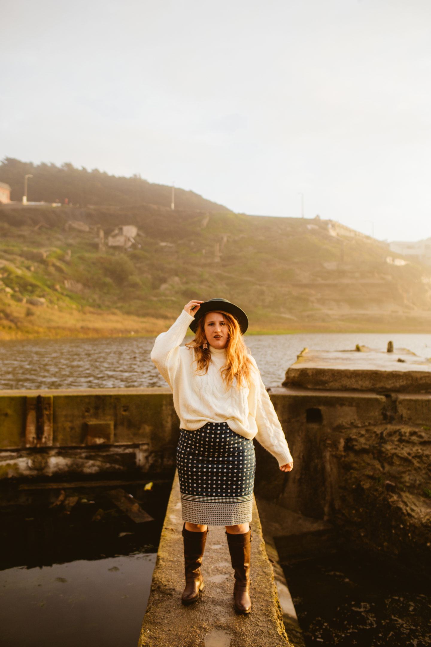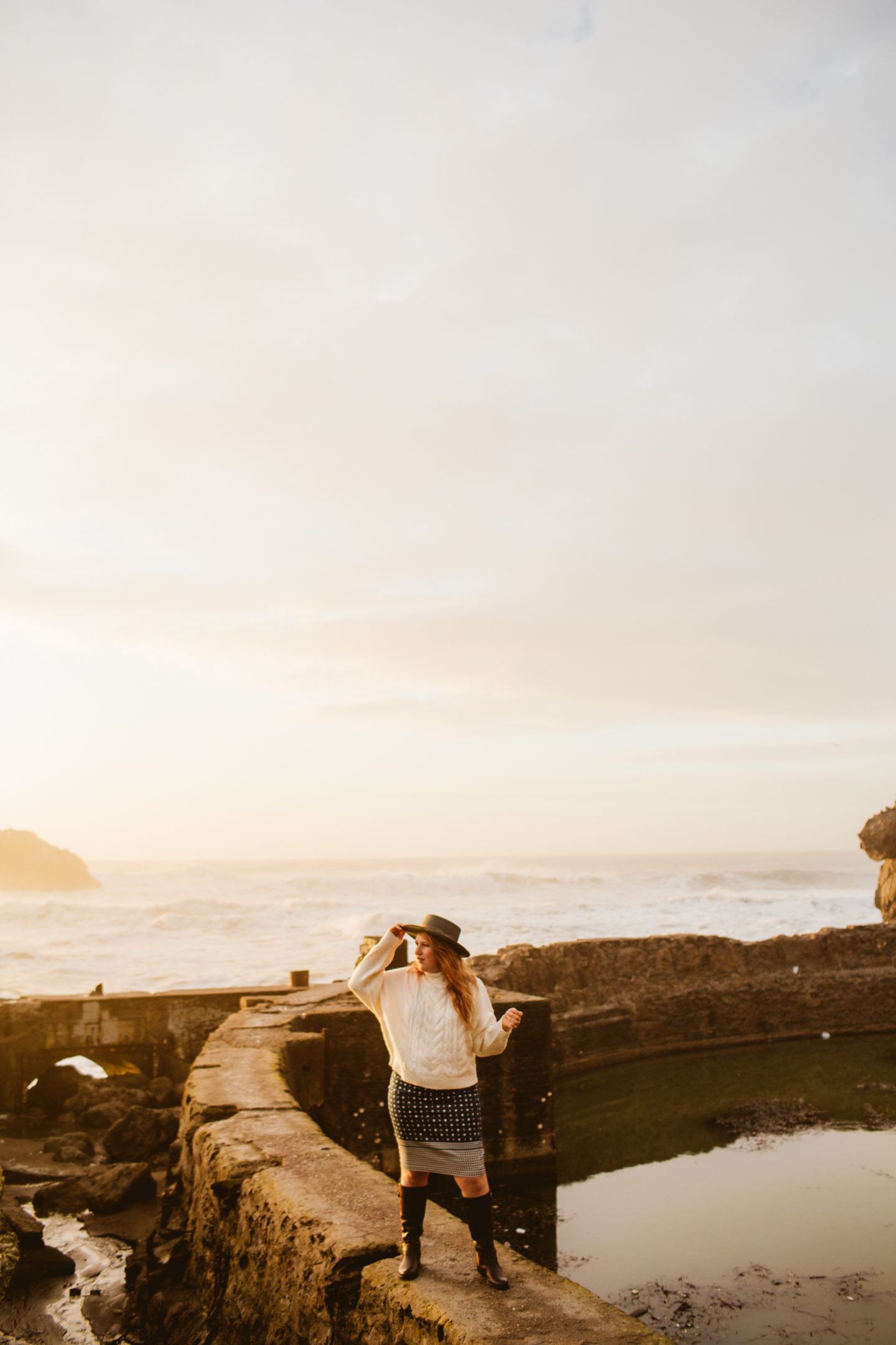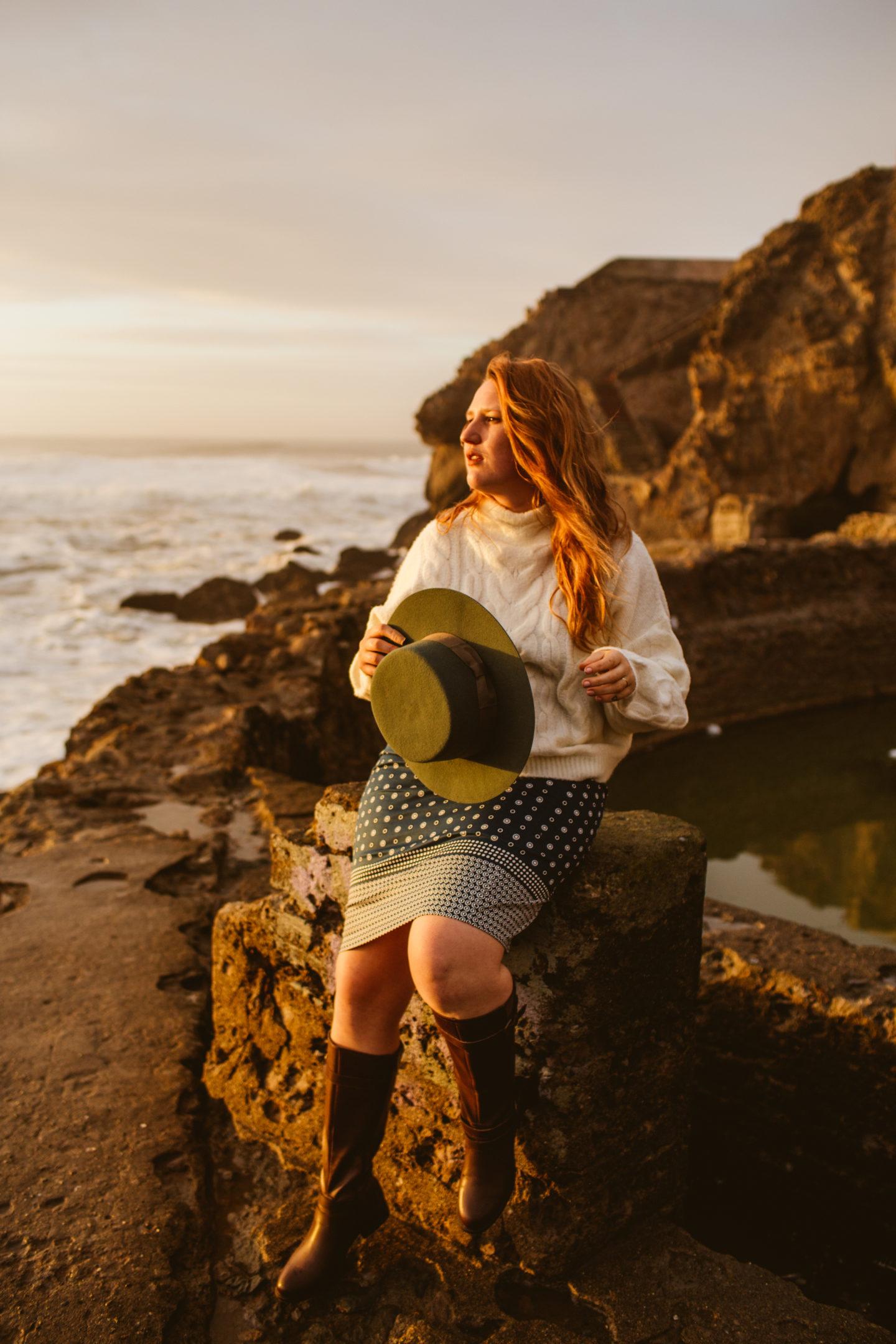 Northern California is infamous for chilly breezes, so for this visit, I paired a chunky J.crew sweater over my pencil skirt, also from J.Crew. I wore sturdy boots, because that’s the main important piece of clothing to wear to Sutro Baths. They are ruins, after all! Skip the heels if you visit, you’ll want shoes so you don’t fall off the broken down walls, etc.